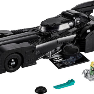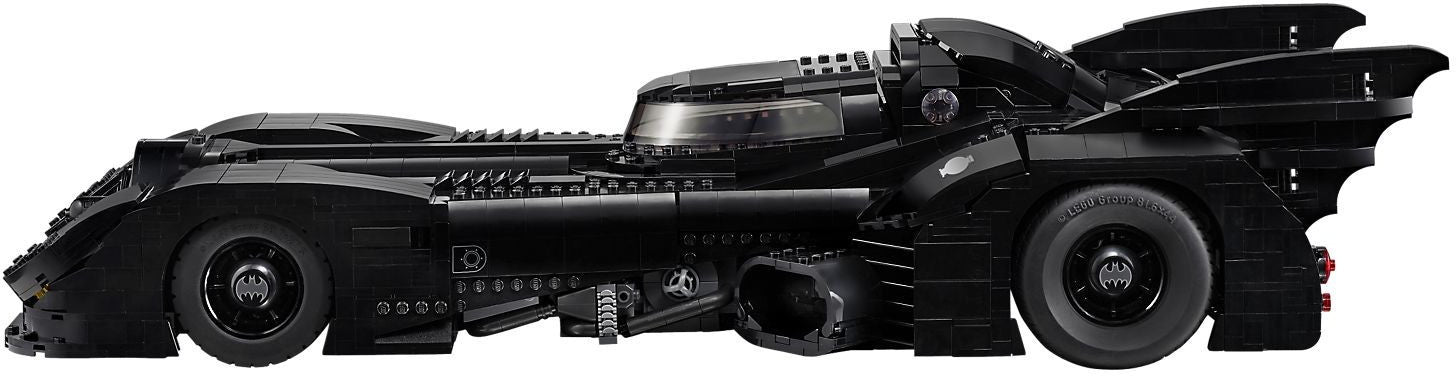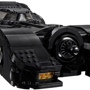 Diese LEGO® Version des 1989 Batmobile™ verfügt über ein aufschiebbares Cockpit mit einer umlaufenden Windschutzscheibe (neu ab November 2019), 2 Sitze für Minifiguren, ein Lenkrad, Schalthebel- und Armaturenbrettaufkleber, 2 versteckte, nicht abfeuerbare Gewehre unter der Motorhaube mit einer durch Drehen des Turbinenauspuffs aktivierten Klappfunktion, 2 dekorative Enterhaken, Radfelgen mit dem Fledermaus-Logo, spezielle Reifen für die Vorderräder, Batwings und andere fantastische Designdetails.