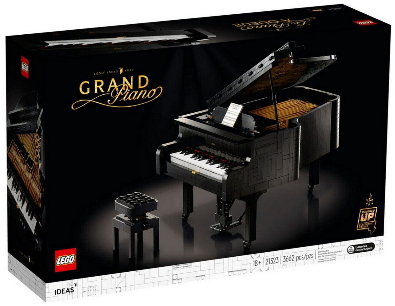 Lieben Sie Musik? Entspannen Sie sich in Ihrer Freizeit gerne bei einem fesselnden Bauprojekt? Dann ist der unglaubliche LEGO Ideas Modellbausatz „Konzertflügel“ (21323) genau die richtige kreative Aktivität für Sie. Wunderschön und bespielbar. Bauen Sie einen Konzertflügel aus LEGO Steinen, auf dem Sie Ihre eigenen Musikstücke spielen können und erfreuen Sie sich an Ihrem Bauerfolg, denn auf dieses komplexe Modell können Sie wirklich stolz sein. Bilden Sie die Hammermechanik jeder Klaviertaste, das bewegliche Pedal und authentische Details wie den aufgestellten Deckel und die Klaviaturklappe nach. Schalten Sie den Motor an, um sich von wunderschöner Musik verwöhnen zu lassen. Wählen Sie in der kostenlosen LEGO Powered Up App entweder die Option „User Play“, um die Noten selber zu spielen, oder aktivieren Sie „Auto Play“, um einfach entspannt der Musik zu lauschen. Gönnen Sie sich eine Auszeit und erfreuen Sie sich an einem musikalischen LEGO Meisterwerk, das Ihr Zuhause oder Ihr Büro bereichert. Das Modell gehört zu einer Reihe von LEGO Bausets für Erwachsene und ist ein ganz besonderes Geburtstags- oder Weihnachtsgeschenk für einen Musiker, Pianisten oder Bastler, der Ihnen am Herzen liegt – oder vielleicht auch eine schöne Belohnung für Sie selbst. Erleben Sie riesigen Bauspass, wenn Sie einen Konzertflügel mit den eigenen Händen erschaffen und diesem äusserst komplexen LEGO Modell anschliessend wunderschöne Musik entlocken. Der LEGO Ideas Konzertflügel (21323) verfügt über eine abnehmbare Tastatur (25 Tasten), eine authentische Hammermechanik, ein bewegliches Pedal und einen Motor. Mithilfe der LEGO Powered Up App können Sie entweder selber Klavier spielen oder die automatische Abspielfunktion nutzen. Erfreuen Sie sich an den authentischen Designdetails. Zur Ausstattung gehören ein Deckel, der sich wie an einem echten Konzertflügel aufstellen lässt, die aufklappbare Klaviaturklappe, die Rollen unter den Beinen sowie eine höhenverstellbare Bank. Wenn Sie sich nach einem kreativen Bastelprojekt sehnen, liegen Sie mit diesem 3.662-teiligen Modellbausatz goldrichtig. Gönnen Sie sich eine Auszeit und stecken Sie bei diesem lohnenden Bauprojekt ganz entspannt Stein auf Stein, um jedem Stress zu entfliehen. Um die Selbstspiel-Funktion des Konzertflügels zu nutzen, werden 6 AAA-Batterien (nicht enthalten) und die kostenlose LEGO Powered Up App benötigt. Wählen Sie „User Play“, um die Noten selbst zu spielen, oder „Auto Play“, um eins von vier Stücken wiederzugeben. Eine verständliche Bauanleitung ermöglicht sogar LEGO Neulingen ein ebenso selbstbewusstes wie vergnügliches Bauerlebnis. Dem Set liegt auch ein Bildband mit Wissenswertem über den Fandesigner und weiteren Infos bei. Dieses LEGO Ideas Bauset für Erwachsene gehört zu einer Reihe von inspirierenden Modellbausätzen für anspruchsvolle Bastler, die ein fesselndes Modellbauprojekt zu schätzen wissen.