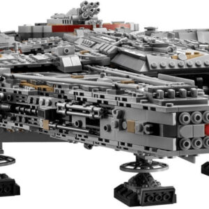 - Außen befinden sich abnehmbare Rumpfplatten mit aufwendigen Details, eine absenkbare Einstiegsrampe, eine verborgene Blaster-Kanone, ein Cockpit mit abnehmbarem Kabinendach für 4 Minifiguren, austauschbare (runde oder eckige) Sensorschüsseln, Vierlingslaserkanonen oben und unten sowie 7 Landebeine.