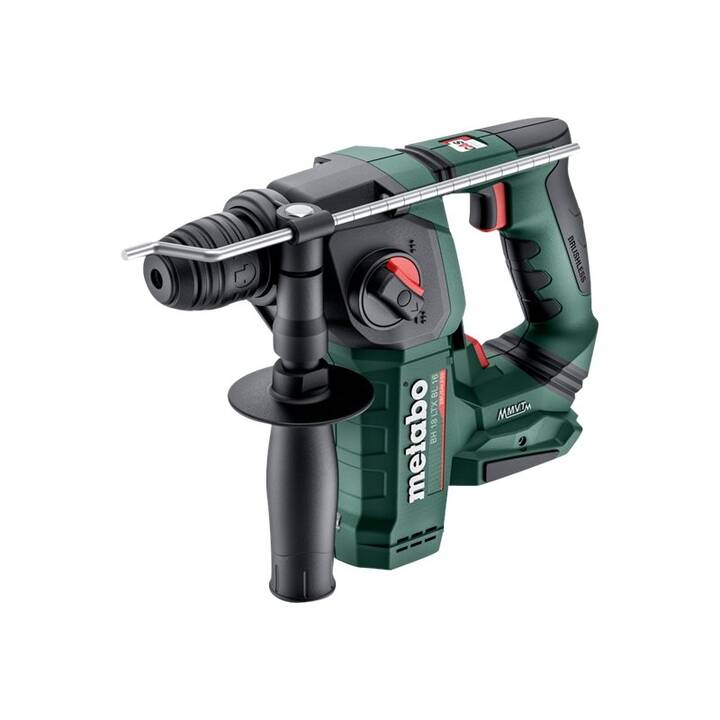 Sehr leichter, kompakter Akku-Hammer mit Brushless-Motor für ermüdungsarmes Bohren in jeder Arbeitsposition. Maximale Bohrleistung, Effizienz und Lebensdauer durch Brushless-Technologie und Hochleistungsschlagwerk. Bohrhammer mit 2 Funktionen: Hammerbohren und Bohren. Metabo VibraTech (MVT): gesundheitsschonendes, ermüdungsarmes Arbeiten auch im Dauereinsatz. Vario-Tacho-Constamatic (VTC)-Vollwellenelektronik zum Arbeiten mit materialgerechten Drehzahlen, die unter Last konstant bleiben. Elektronische Sicherheitsabschaltung des Motors beim Blockieren des Einsatzwerkzeugs zum sicheren Arbeiten. LED-Arbeitslicht für optimale Sicht auf die Bohrstelle. Akkupacks mit Kapazitätsanzeige zur Kontrolle des Ladezustandes. Ultra-M-Technologie: höchste Leistung. Lieferumfang: Zusatzhandgriff. Bohrtiefenanschlag, 2 Li-Power Akkupacks (18 V/2,0 Ah). Ladegerät SC 30. MetaBOX 145 L.