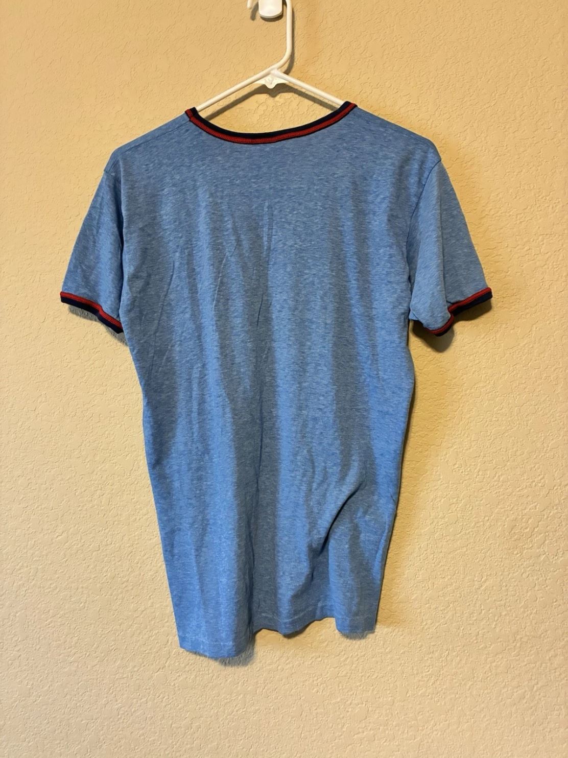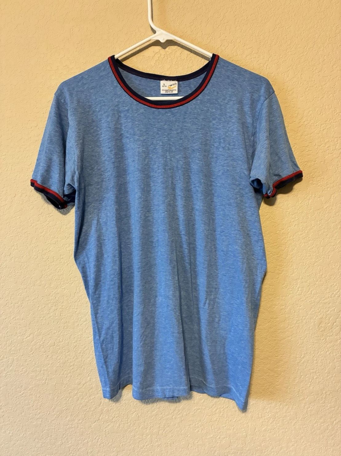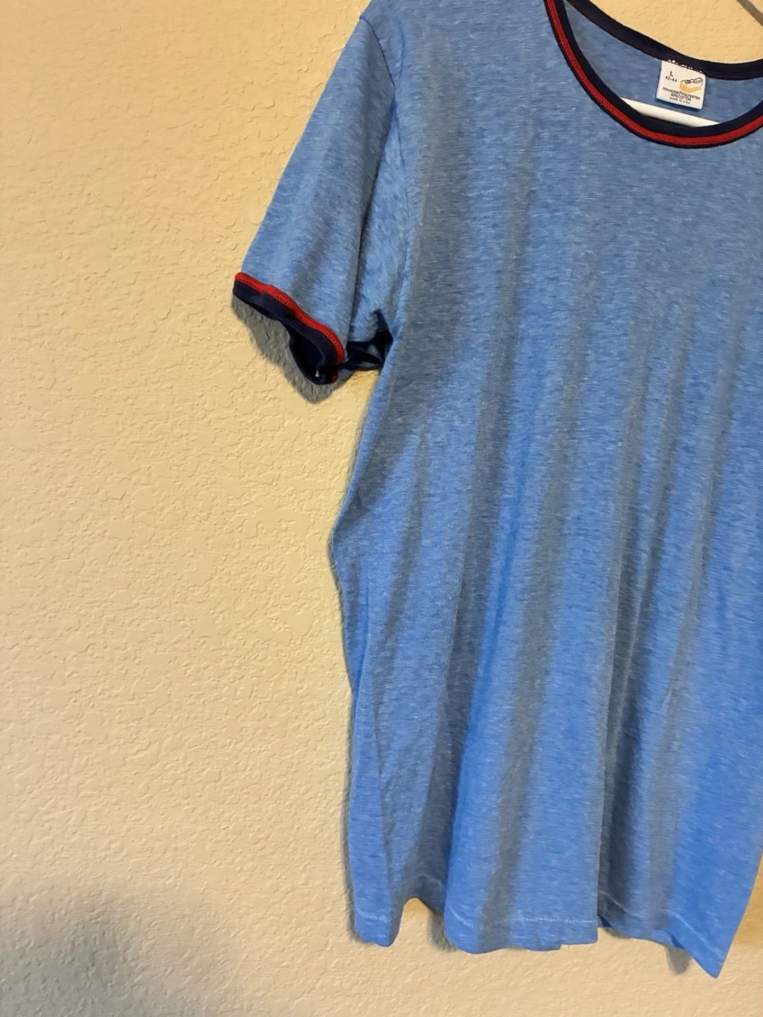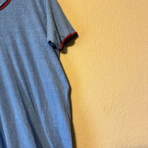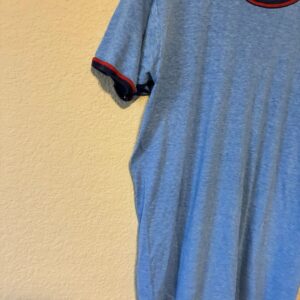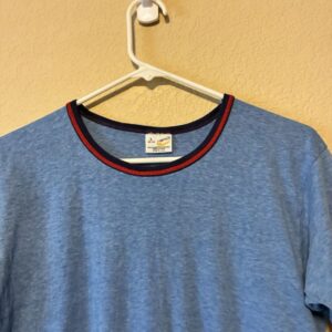 Vintage 80er Ringer T-Shirt Herren – Blau, Größe L, Unifarben
