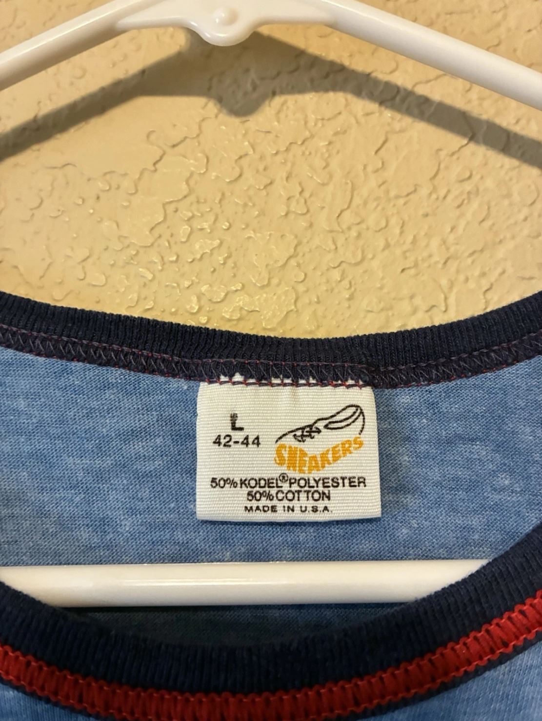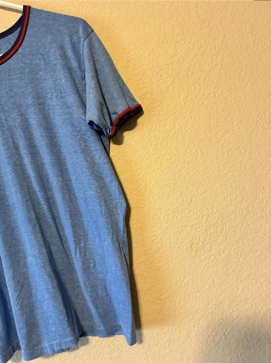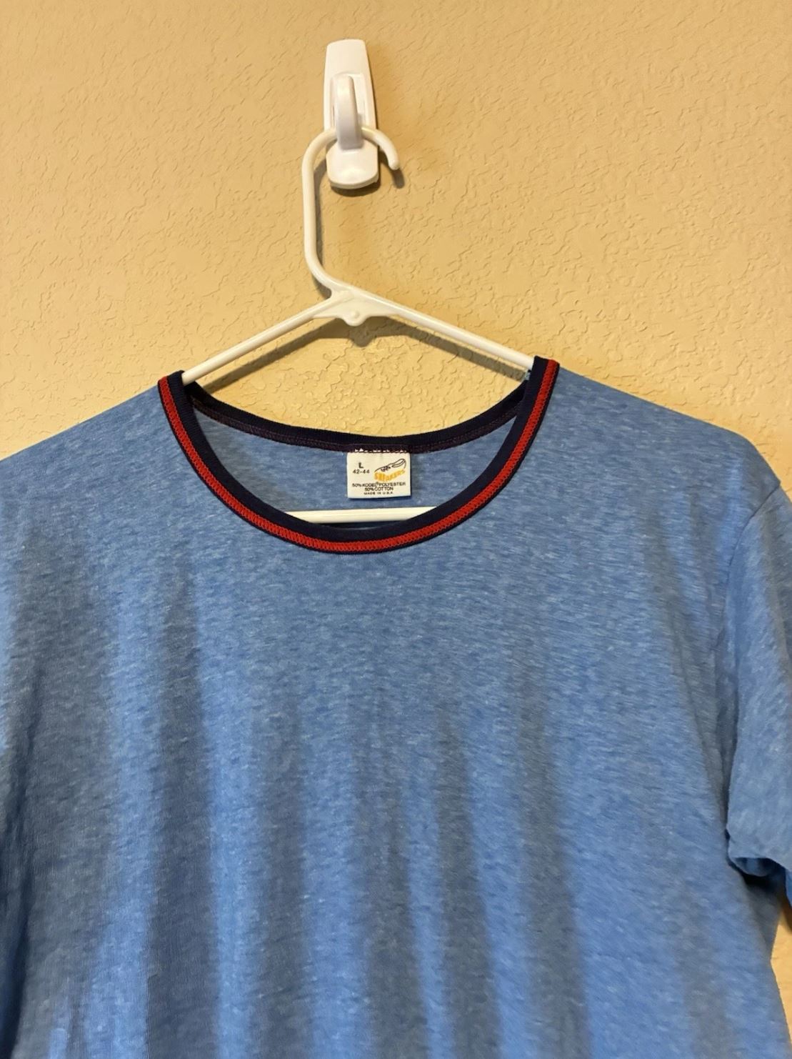 Vintage 80er Ringer T-Shirt Herren – Blau, Größe L, Unifarben